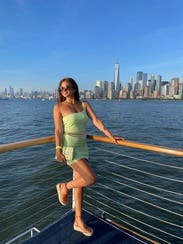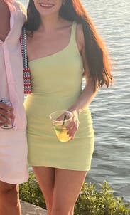 RTR team review! I was inspired to rent this for a night out to a floating bar on the Hudson river after seeing another review in a similar setting. Fit was TTS (I usually wear an XS), but it was definitely short as other reviews warn about. The dress is stretchy so easy to rise when you walk which meant I was pulling it down all night + also making sure the top part didn't get pulled down since I went bra-less... otherwise loved the color and felt cute for a night.