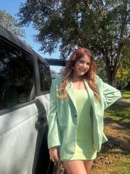 Fabric looked inexpensive, like something from forever 21. Its more of a bright neon green as opposed to the pale green it looks like in the photo.
