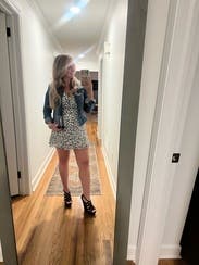 This dress is super cute and everything about it would have fit me perfectly if it wasn't for how short the dress was. SIZE UP! Or wear some leggings underneath so you're not showing your panties to the world every time you bend down. Lol.