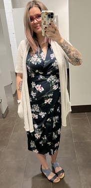 It was a really flattering cut but it did open a bit at the bottom when you sat, so I did have to keep pulling it over my thights/spanx