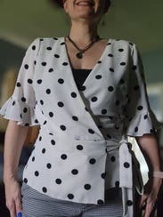The fit was true to size, the fabric was light weight and the polka dots made it fun to dress up or down. I did prefrontal wear a cami top underneath as the wrap around could tend to open up.