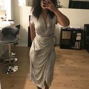 This dress was okay. I felt like it fit really nice, but I didn't read well beforehand and didn't notice that it's like a stretchy polyester material that is very clingy. Also, the neckline kept kind of opening up on me to make it a little deeper than I wanted. I got a lot of compliments but I wouldn't rent again.