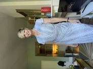 Good fabric that travels well. Easy to wear. When sitting the slit does fall open but never had any issues with it. Good pattern. Lots of compliments. Usually wear a M but only size available was a L and it fit well.