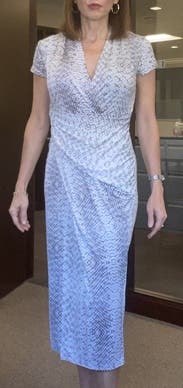 Much more flattering than it looks in the picture I took super fast at work. Great fit. Low key print. Just a beautiful dress.