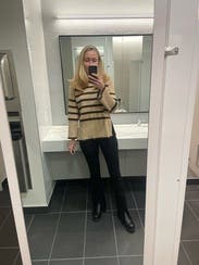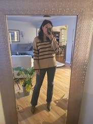 Loved this striped sweater! Super soft and quality material. Normally an XS but ordered a S for a looser / more oversized fit