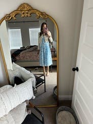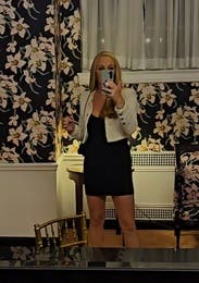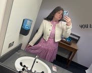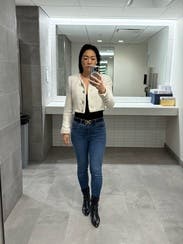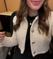 I usually wear an 8 in blazers/jackets for work, this way it’s a little loose and I’m able to wear a shirt comfortably underneath it. I would rent this item 1000x over, I got so many compliments on it at work. Unfortunately only took this one picture in it though.