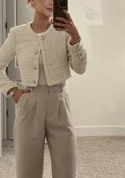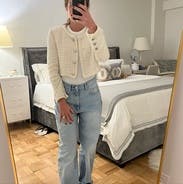 This is the perfect little jacket to throw over spring/summer dresses in the office. The cropped length was really flattering and showed off my waist. It has a subtle sparkle but didn’t feel scratchy.