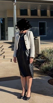 Wore with a fitted tweed work dress to a conference. Would rent again!