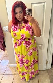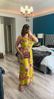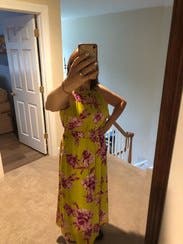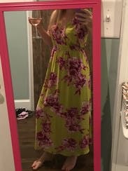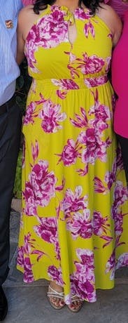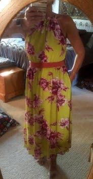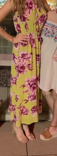 Received lots of compliments on this dress. Was perfect for 90+ degree weather. I have no idea why I struck such a horrible pose for this photo but the dress is flattering when you aren't sticking you stomach and hips out!