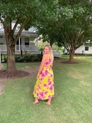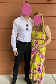 This dress was comfortable and pretty. It fit the floral and champagne theme for the shower we hosted and looked great in photos