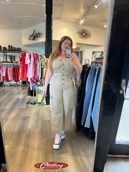 I really enjoyed this rental. Wore it for a weekend away, grocery shopping, and dance class. The top was flattering when unbuttoned a bit. I am pear shaped and it was tight on my butt and hips. The belt isn’t move able which was less than ideal. Overall though I liked it and I’d rent it again.