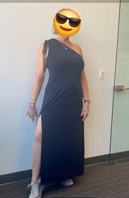 I LOVED this dress and wanted to keep it. It was true to size, flattering, and extremely comfortable. The slit is not as high as it looks in the picture which I liked. Would definitely rent this dress again, or buy it if I can find it online!
