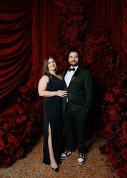 The material is stretchy and soft but still felt expensive. Very flattering. I would possibly consider renting this in the future, just was a bit boring for what I want right now. I tended to wear this to a formal wedding, but went with a different option.