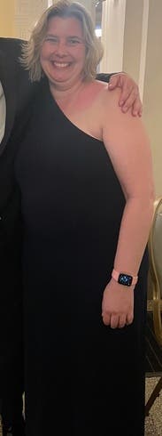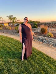 dress was so comfy and so cute, but the length was off - little too short to be floor length and too long to be midi. I used a tiktok hack — put a bracelet on the outside and hair tie on the inside of it to give it an asymmetrical midi hem line and add some flattering ruching in the front. worked like a charm!