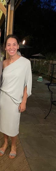 Really pretty dress that I wore to a rehearsal dinner. I was starting to show my pregnancy so a smidge tight around the midsection but very comfortable nonetheless.