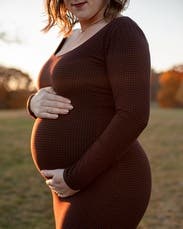 I normally don't wear too many form-fitting dresses, but this was so comfortable and flattering. I used this for a casual maternity shoot and I really love the way the bump popped!