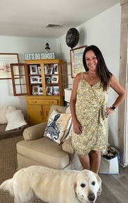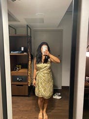 I wore this dress for brunch and dressed it down with white sneakers and a denim jacket. My biggest knock on this dress is the chest area. I'm 34B and normally never need to worry about the girls popping out, but the clasp in the cleavage area would not stay close. It constantly opened and closed and had a few moments of almost nip slips. I would recommend wearing pasties underneath.