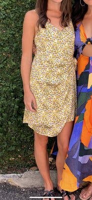 Such a pretty and easy to wear dress! Loved the inside buttons for the wrap. Was too big for me! I could have sized down for sure. Feels and looks so expensive but also pairs well with a denim jacket! Loved this rental.