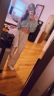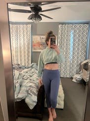 Just a heads up that as you can see this is super cropped! I’m 5'7" for reference. I liked it but might not be for everyone. Also, it's not soft, it's more of a jersey type fabric almost