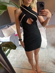 Loved this dress! Super sexy and fit like a glove. A bit short but could be styled with tights if need be. The cris cross bandage straps created a nice support for the girls and gave me a bit of cleavage without having to wear a bra. Loved it!