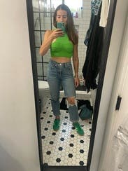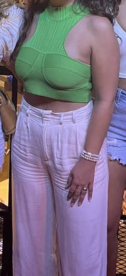 Such a cute top. The bright green is amazing and can definitely be dressed up or down. It ran a little big but I put bathing suit cup inserts in to fill it out a little and it worked great!