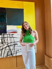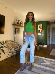 This too is so vibrant and structured really well! I will probably be purchasing. I’m tall and it is cropped but it works with high waisted pants! Great for a date night!
