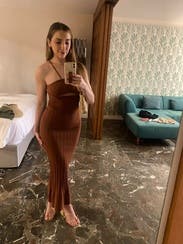 Another one I wanted to make work but the top part was just a little too big. I’m bigger in bottom so that part fit great but I needed a bigger chest to make the top part look right and to keep me from adjusting. The length was perfect- could have done flats or heels. Loved this look- would like to try the small in the future. Definitely give it a try! So sleek, chic and sexy without being too much.
