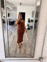 One of my favorite designers! This dress is the prettiest color brown! Absolutely loved everything about it!