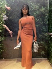 I'm now in love with this designer! All their clothes fit like a dream, it's the right amount of tight but also functional. I wore to a casual day because the color gives day vibes versus night out (also I would prefer just a tad but tighter to go out) my only gripe was I wish the top was more forgiving for small bust girls because it was givin FLAT and you can't wear a bra due to the keynote hole but still a win!