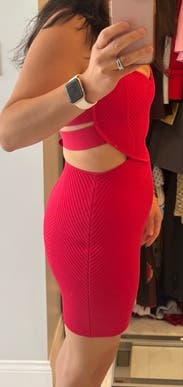 This looked so cute on the model and others but it was just okay on me. I have a large butt/hips so maybe that was it but it wasn’t flattering on me. Also the material wasn’t as stretchy as other Herve Leger dresses I’ve worn in the past