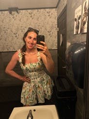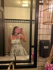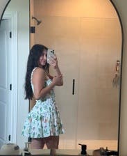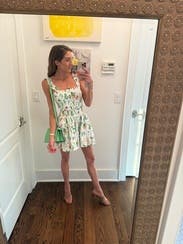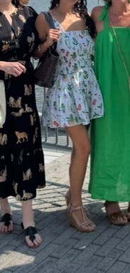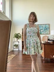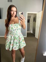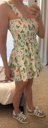 Loved this dress! Received so many compliments, especially about how cute the pattern was with the garden veggies. It’s super stretchy, so I think I could have gone down a size b/c the straps were falling down a little and I had some room in the top. Super cute and will rent more Hill House now!