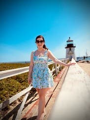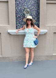 This Hill House dress was fun and whimsical for my vacation. I am a 6/8 and always wear a small in longer Nap Dresses, but go with a medium for short Nap Dresses for the length. This one was still a bit short on me at 5’5”.