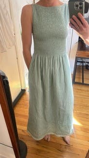 Normally, I order XS in Hill House dresses, but sized up to small since I’m 5 months pregnant. The dress was so comfortable and breathable.