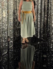 I had stalked the Cosima dress style on Hill House Home’s website for a bit, so I was glad when it became available to rent on RTR. I am typically a XS in HHH dresses, which is what I rented. It fit fine, but it wasn’t my favorite cut. It flares out at the hip area and, for me, accentuated my hips in an unflattering way. My husband called it “Little House on the Prairie chic,” which is kind of my aesthetic, but it just didn’t work here. And tbh, it was overall just a bit boring. Glad I rented it, but I won’t be revisiting this HHH style.