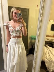 Ended up not wearing this. The rise of the skirt was almost up to my bra line. Other’s pictures look great, but I can’t imagine what I would wear this with that wouldn’t look awkward
