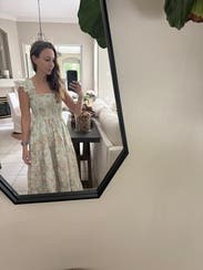 I love renting this style from hill house because of how much use I get out of their dresses. I wore this to dinner, church in the summer, work with a little sweater over it etc. It fits perfectly - if anything size down but I didn’t really notice a difference between the small and the medium