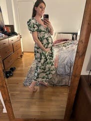 Wore this to my baby shower and it was a big hit. Felt beautiful and also different than the typical Lioness dress everyone has been wearing to their shower lately. I am in my third trimester and sized up two sizes