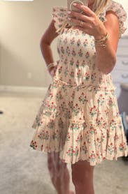 Absolutely loved how cute this dress made me feel!! It is so flattering and surprisingly comfortable. This is a very feminine dress so you have to be okay with feeling cutesy, especially with the small flower details. I would purchase it if it came in a solid color.