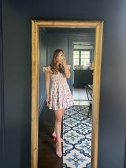 Sorry couldn’t find a full body photo but when I tell you I wore this dress basically everyday- I dead ass did. The print is gorg and it’s comfy but cute, classic hill house. Dress down with sneaks and up with sandals - love