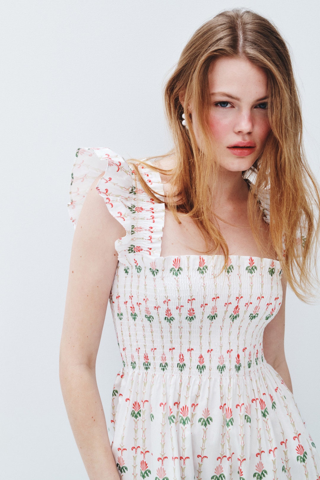 The Hill House Home White Ellie Nap Dress is a breezy midi that combines a smocked bodice with a tiered skirt for effortless comfort. Pair it with sandals and a woven bag for a relaxed, daytime look.