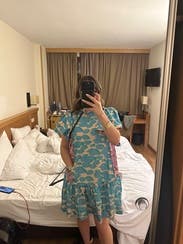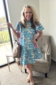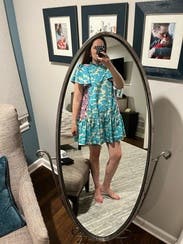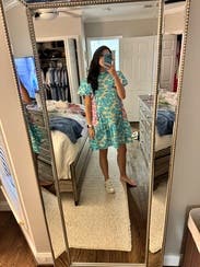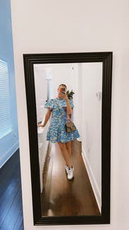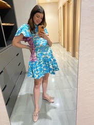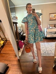 Loved this spring dress, I wore it to work. The material feels almost like plastic so it’s best for a slightly breezy day. It was a little short but worked for me!