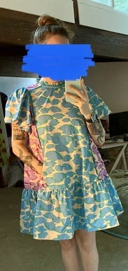 Such a cute dress and fun. It’s large and oversized and adorable.