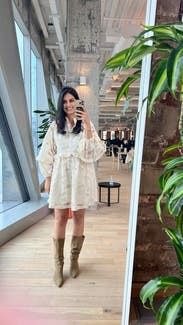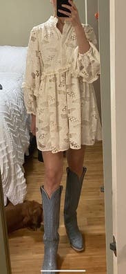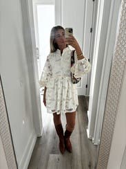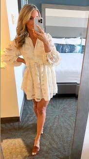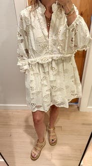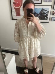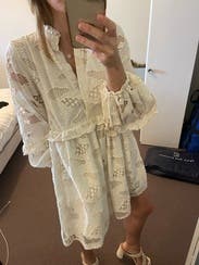 LOVED this dress - wore it to a beauty trade show & think I sold more of this dress to people than the products I was supposed to haha such an easy wear, only needed a quick steam - was easy to travel with. Definitely a true babydoll style so it’s on the shorter side (just avoid a lot of bending down!) such a gorgeous piece - so unique and the detailing is stunning. I can’t wait to rent it again