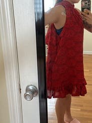 Loved this dress! It is big in arm pits so there's a high degree of side boob, but it's flouncy and cute and you can wear something underneath if needed. Great for the holidays!