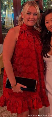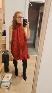 This dress was perfect for a work holiday party. I received many compliments and felt very festive. The dress itself runs a bit big, especially if you aren’t large in the chest area, however, it worked really well for me when I sized down to a 6.