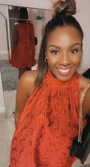I wore this to a fall evening wedding in Georgia, the attire was cocktail and this was perfect! I got so so so many compliments and on everyone loved the dress, so you definitely can’t go wrong!! I’m a tall 5’7” and currently 133 lbs. (I have curves when looking at me head on, but small boobs and butt) I usually wear a 2 or 4 in dresses. I probably could’ve sized down but that’s not an option here, so the smallest option available worked, I just made sure to tie the neck tightly. This also has pockets!!