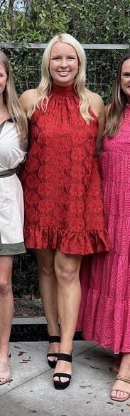 Loved this dress! Flowy, cute bow in the back and has pockets. Will rent again