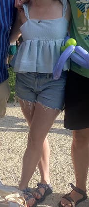 looks so cute paired with jeans and the tie in the back is pretty unique. the chest is a little tight but overall the top is pretty adjustable