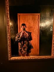 This was a fun piece to style. I wore it with shear tights and chunky loafers for out to dinner. I felt fashionable and flirty with the unusual cut and fabric and mini length. I got a lot of compliments. Unfortunately I don’t think it photographed very well. If my hair were long enough, I would have worn it up in a bun due to the high ruffled collar. Loved!