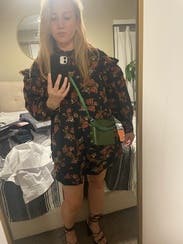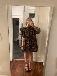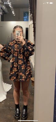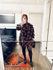 Couldn’t pass this up even though reviews mentioned it running short! I’m 5’2” and this still barely made the cut. Had to wear opaque tights to feel comfortable out and about, but still loved the look for a fall day! I also found the sleeve openings to be a little tight for my liking.